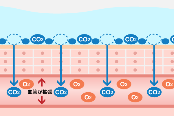 二酸化炭素が血管内に浸透、細胞が酸素不足だと錯覚し血管が拡張、血流が増加する